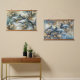 This set of two hanging tapestries brings together a pair of enchanting dolphin dreamscapes, each blending ocean life with intricate botanical elegance. In one design, dolphins glide through swirling waves framed by golden leaves and soft floral accents, while the companion piece carries the theme forward with luminous tones of teal, silver, and shimmering gold. Together, they create a harmonious balance of energy and tranquillity, making them perfect for display side by side or in separate spaces for a cohesive decorative theme. The flowing curves, delicate details, and ocean-inspired palettes evoke feelings of freedom, serenity, and natural wonder. Ideal for ocean lovers, coastal interiors, or anyone drawn to imaginative marine beauty, this set captures both movement and stillness in equal measure. AI generated artwork.