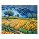 This captivating painting captures the beauty and drama of a wheat field caught in a sudden storm. The golden waves of wheat sway and bend under the ominous dark clouds, while a shaft of sunlight breaks through, illuminating the scene with a touch of hope. This piece is sure to add a touch of rustic charm and natural elegance to any home.