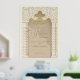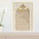 Usher your guests into your Nikah ceremony with this majestic welcome sign, adorned with the elegance of Islamic architecture. It features a golden arch that beautifully frames the welcoming script, while intricate arabesque patterns cascade down the sides, complemented by chevron columns. The design's colour palette of gold, cream, and ivory sets a luxurious tone, as the card reflects the light, creating a shimmering effect that captures the essence of your special day. Perfect for greeting guests at the venue entrance, this sign is not only a guide but a piece of art that enhances the celebratory atmosphere.
