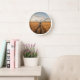 Rustic wall clock with a golden wheat field and blue sky. A natural and warm countryside design for cosy interiors