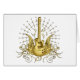 Fantasy style musical design features a golden winged guitar with scolling accents and music notes.