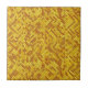 This ceramic tile features a seamless, woven pattern in shades of gold and yellow, reminiscent of traditional textile designs.