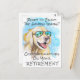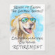 Cute and modern retirement congratulation card with a funny golden retriever on a tropical beach. Original design created from one of our hand painted watercolors.