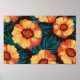 Golden-Yellow and Red Flowers with Teal Leaves Poster
