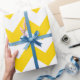 A wrapping paper designed with a golden yellow and white chevron pattern in extra large size. You can change the yellow for a different colour.