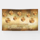 Destei's original illustration of golden yellow colour festive Christmas baubles that have a snowflake pattern on them. The background is a beautiful yellow and brown colour bokeh. There are also two personalizable text areas.