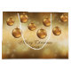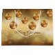 Destei's original illustration of golden yellow colour festive Christmas baubles that have a snowflake pattern on them. The background is a lovely yellow and brown colour bokeh. There are also two personalizable text areas.