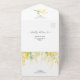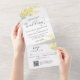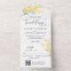 This elegant yellow floral wedding all in one invitation is designed with an easy to tear off perforated RSVP postcard with a QR code. Simply fold the card, seal and send (no envelope needed).