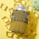 Light Background: A clean, neutral background (likely off-white or light grey) provides a striking contrast, allowing the yellow and gold design to stand out.