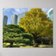 Beautiful ginkgo of golden yellow and a pine tree under the autumn sky at Hama Rikyu Garden, Hama Imperial Detached Palace Garden in Tokyo, Japan.
