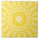 This golden yellow mandala design radiates warmth and positivity with its vibrant symmetry. From the radiant starburst centre, scalloped edges, leaf motifs, and circular shapes ripple outward in layered harmony. The bold sunflower-yellow tone captures brightness and energy, while the crisp white detailing emphasizes the intricate geometry. Its kaleidoscopic flow creates a balance between playful vibrancy and meditative calm, making it feel both uplifting and timeless. Perfect for those drawn to sunny palettes, bohemian style, and sacred geometry-inspired patterns, this design glows with cheerful elegance.