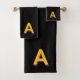 Golden Yellow Monogram on Black Bath Towel Set