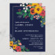 Golden Yellow Navy Blue Bohemian Bouquet Invitation