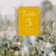Guide your wedding reception guests to their table with this simple style table number card that features white, stylised lettering on a trendy, golden yellow colour background. Design is on each side of card. Edit your card to change table number, wedding couple's names and date. Order cards separately for each table number.