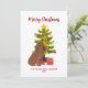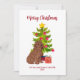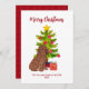 Cute Goldendoodle Christmas Card featuring Christmas tree and gift. Personalise with your text.