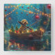 Set sail into the magic of the holiday season with this beautifully detailed illustration, showcasing a proud dog sitting in a festively decorated boat, gliding across a serene Christmas lake. The twinkling lights from nearby pine trees reflect off the water, casting a warm, festive glow that enhances the cosy ambiance. Ornaments dangle from the boat's sides, while glowing lanterns light the way, creating a scene that captures the true essence of Christmas warmth and joy. This nostalgic artwork brings a touch of holiday magic to any space, perfect for those who cherish the spirit of the season.