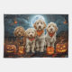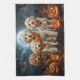 Unleash the spooky spirit with this eerie Halloween design featuring a pack of dogs under a dark, moonlit sky, surrounded by flying bats and glowing pumpkins. Perfect for those who love a touch of frightful fun with their furry friends!
