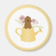Cartoon illustration of a Goldendoodle popping out of a watercan filled with flowers. Perfect for summer and spring!