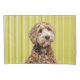 Goldendoodle Laying on Bright Yellow Podium Pillowcase