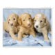 This calendar features several adorable golden doodle puppies.