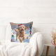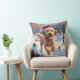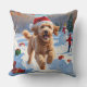 Goldendoodle Running in Snow with Christmas Hat Cushion