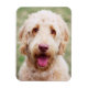 Up close shot of a goldendoodle smiling. Designer dog, golden retriever and poodle.