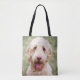Up close shot of a goldendoodle smiling. Designer dog, golden retriever and poodle.
