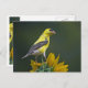 This colourful card features a photograph of a goldfinch perched upon a giant sunflower.