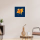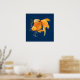 Nautical poster with fantail goldfish, rudder and anchor illustration on navy blue background.