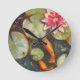 This goldfish or koi swimming in a water lily pond is a classic look at a universally beautiful subject. The painting is done by Florida artist Mary Hubley. Goldfish or koi swimming under several lily pads. A beautiful addition to any home décor, a lily pond with pink water lilies is something that the classic impressionists have created, especially Claude Monet when he created many lily pond images in France. The lily pond, pink water lily, and koi are beautiful settings. Peaceful koi, beautiful lily pads, and serene lily flowers are perfect!