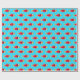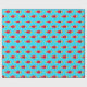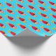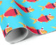 Fun Christmas wrapping paper with a pattern of illustrated goldfish in Santa outfits on a blue background.