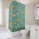 Coloured goldfish swim in a pool of blue water on this shower curtain.