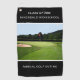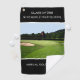 Customise 18th Hole golf towel. Design shows illustrated approach to green with trap and flag with 3 areas to customise text or delete sample text.