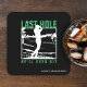 These custom coasters feature the playful phrase "Last Hole He'll Ever Hit" in green, black, and white, perfect for a golf-themed bachelor party. Personalise them with the groom's name for a unique and memorable touch. Ideal for the groom and his friends, these coasters add a fun and personal element to any pre-wedding celebration.