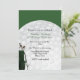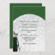 Golf themed wedding Invitation, with graphics of a white pitted pattern golf ball look serving as the text area, against a green background. Graphics of a green golf bag, with clubs and a golf ball on a tee, decorates the bottom left corner. Personalise the custom text to suit your golf party needs. Matching RSVP cards available.