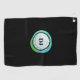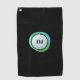 An original cartoon style design depicting a large golf ball surrounded by an artistic watercolor ring in green and turquoise, all on a black background. The perfect golf gift for him or her. You can add your chosen initials by clicking on the personalize link.