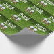 Golf ball Christmas tee with ribbon hat on green Wrapping Paper