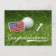 Golf Ball Congratulations with flag of America Postcard
