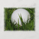 Golf ball lying in a field of grass design postcard.