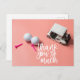 "Share your gratitude in style with our Baby Girl Golf Ball Thank You Postcard! Featuring a charming pink golf ball design adorned with 'Thank You' in elegant script, this postcard is the perfect way to express appreciation after celebrating our little one's arrival. Personalise the back with your heartfelt message to friends and family who made our day special. Send a token of our heartfelt thanks with this adorable postcard, celebrating love and support as we welcome our baby girl into the world."