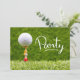 Golf ball is on tee on green grass background invitation
