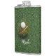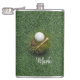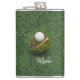 Golf ball on green grass hip flask