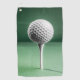 Golf Towel with image of a white golf ball on a white tee on a green background.