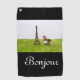 Golf ball with Eiffel Towel on green Bonjour golf towel