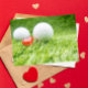 Golf ball with love red heart on green Valentine Card