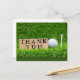 Golf ball with thanks word on green grass Postcard, This design is perfect for expressing thanks to those who've shared the joy of the game or offered support along the journey. The backside offers ample space for a personalised message, ensuring your sentiments are conveyed with sincerity. Whether acknowledging a golfing mentor, companion, or benefactor, this postcard melds the spirit of the sport with the warmth of gratitude.