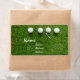 Golf balls and tee on green grass label