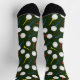 Sporty golfer's socks patterned with colourful golf balls and tees on dark green