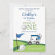 Celebrate your little ones special day with this fun golf-themed birthday party invitation! Featuring playful golf course graphics, a flag, ball, and cart, this design is perfect for young sports fans. The cheerful wording and vibrant style make it ideal for a first birthday or any milestone celebration. Personalise with your party details to create a unique keepsake that guests will love. Great for golf clubs, outdoor parties, or sporty family gatherings, this invitation is a hole-in-one for your event!