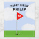 Golf birthday party wine labels or creative gift stickers featuring golf-themed design and funny line for your favourite golfer. To personalise edit text to add his or her name and age.